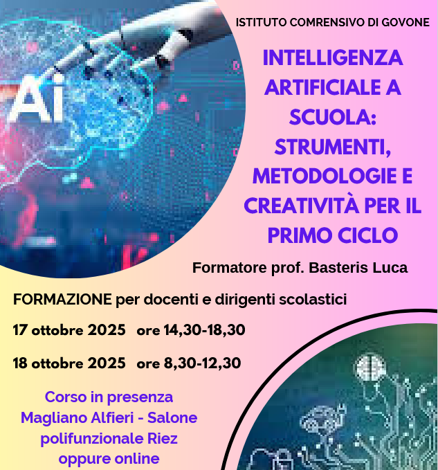 Corso organizzato dall'Istituto Comprensivo di GOVONE che si svolgerà il 17 e 18 ottobre presso il Salone Polifunzionale Riez di Magliano Alfieri.